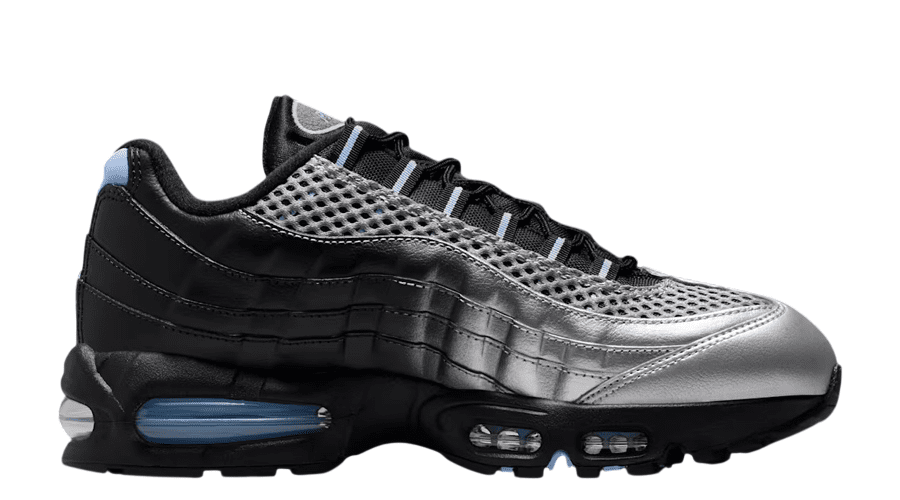 The Palace Skateboards x Nike Air Max 95 “Big Bubble – Metallic Silver” feels right at home in the UK. This is a silhouette that’s been part of British street culture for decades. From London to Manchester, the Nike Air Max 95—often called “110s”—has never really left the streets.