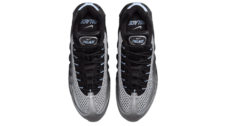 Details matter here. You’ll spot custom Palace branding across the pair, stamped in ways that feel bold but still clean. Mesh and layered panels stay true to the original Air Max 95 design, keeping that signature ripple effect along the sides. Aluminium accents and reflective touches catch light without overdoing it.