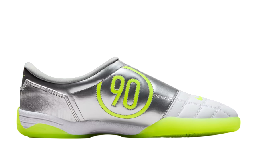 First spotted on Wayne Rooney’s feet, the pair has already turned heads before its official release. The upper keeps the signature asymmetrical Total 90 design, mixing white leather panels with chrome-like metallic silver hits that catch light from every angle. There’s a touch of nostalgia in the quilted toe, a subtle nod to early 2000s pitch style, but it’s given a modern polish through the glossy textures and refined finish.