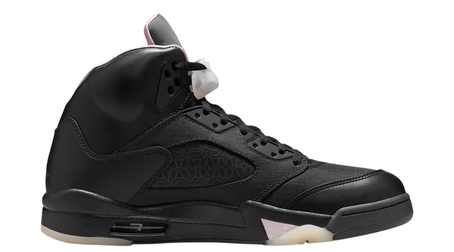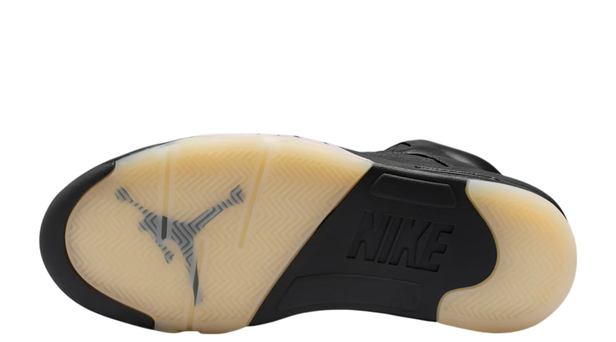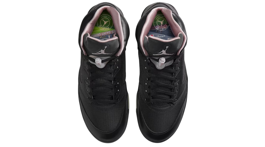 The Paris Saint-Germain x Air Jordan 5 “Off Noir” blends football heritage with one of Jordan Brand’s most loved silhouettes. The upper leans into deep black tones, using a mix of leather and textile that keeps the shoe looking sharp. A tinted mesh panel sits on the side with the PSG crest tucked inside it. Another crest appears on the heel for a clear nod to the club.