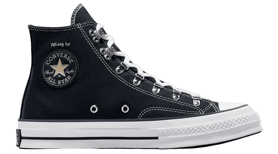The pgLang x Converse Chuck 70 High “Aura” A06220C is a part of Converse’s ongoing collaboration with pgLang, reintroducing their minimalistic interpretation of the Chuck 70, this time in a stylish black design with two fresh variations. A closer inspection reveals subtle nuances that set these pairs apart. One features Converse Navy pinstriping on the left shoe and Irish Cream on the right, while the other displays Irish Cream pinstriping on the left and Converse Red on the right. The version you receive remains a surprise, randomly chosen and not revealed until you unbox it.