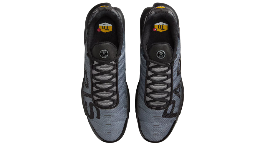 Mesh makes up the base, keeping it breathable and light on foot. The signature wavy overlays return, this time in muted black with a matte finish. PSG branding lands on the tongue and sockliner — low-key, but still proud. A grey Swoosh sits at the midfoot, framed by that familiar TN shape that’s been turning heads since the late ’90s.
