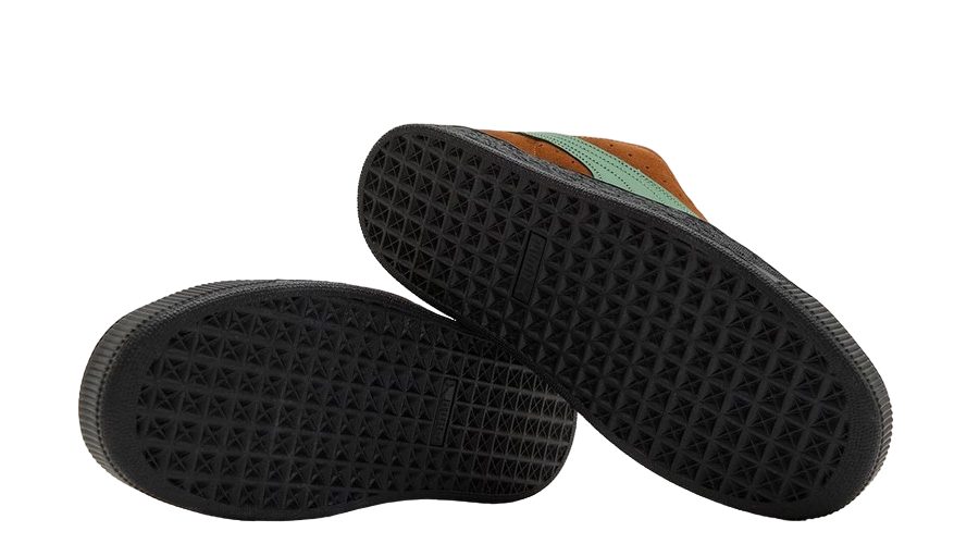 Distinctively, the model introduces a crinkled sole, adding a unique texture that contrasts with the shoe’s smoother upper materials. This design choice not only contributes to the overall aesthetic but also nods to vintage influences, providing a bridge between past and present design philosophies. The PUMA branding, strategically placed on the tongue, laterals, and heel cap, reinforces the shoe’s identity within the broader PUMA lineage.
