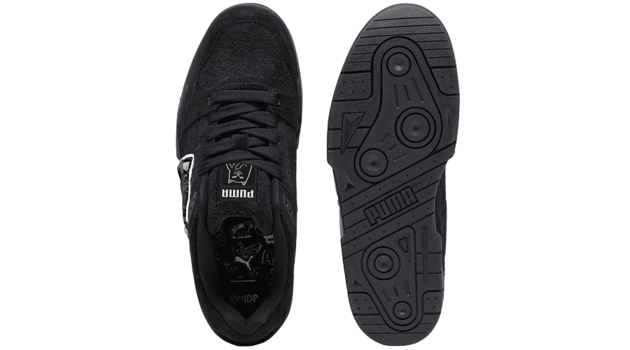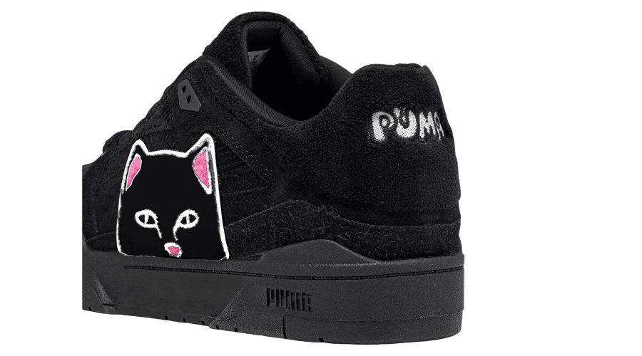 With co-branding elements from both PUMA and RIPNDIP, these sneakers become a canvas for personal expression and fashion-forward style. Alongside their striking aesthetics, the rubber outsole ensures both longevity and dependable traction for everyday use. In essence, the RIPNDIP x Puma Slipstream “Lord Nermal – Black” 393538-02 reinvents classic footwear with a playful and distinctive twist, making it a must-have for fashion aficionados seeking a blend of uniqueness and practicality in their footwear collection.