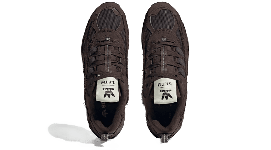 The sneaker’s colour scheme in shades of dark and night brown creates a sophisticated and earthy aesthetic. Creamy accents on the tongue, co-branded tongue tags, and an adidas tag on the medial side add to its visual allure.