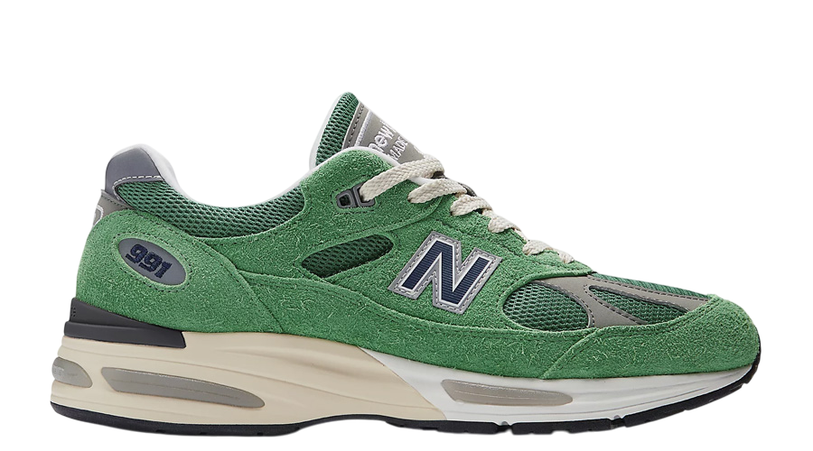 The New Balance 991v2 “Mineral Green” steps into spring with a fresh look that’s all about material and shade. Teddy Santis, who’s been on a roll with the Made in UK line, brings something different this time—hairy suede. You’ve seen this model dressed in smoother styles before, but here, the texture takes over.