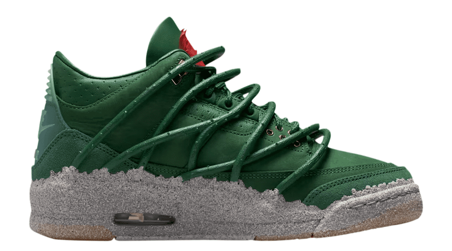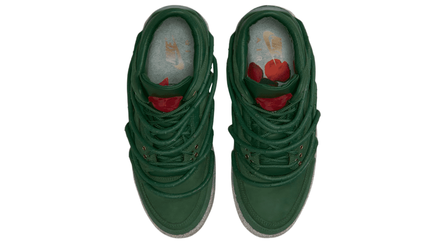 Then come the details that carry the message. A detachable thorn accessory adds a sharp finish, tying back to the “Concrete Rose” concept. Hits of green around the eyelets break up the darker tones. Metallic accents bring a slight shine without taking over. On the tongue and sockliner, rose graphics add contrast—soft visuals against a tougher build.