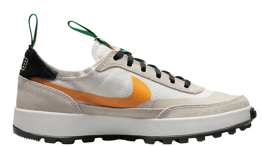 The Tom Sachs x NikeCraft General Purpose Shoe in “Summit White” (style code DA6672-100) has gained significant attention in the sneaker community. Part of the NikeCraft General Purpose Shoe (GPS) collection, this version boasts a clean white mesh upper with tan suede overlays. The Swoosh and pull-tabs add vibrant touches in University Gold and Pine Green, respectively.