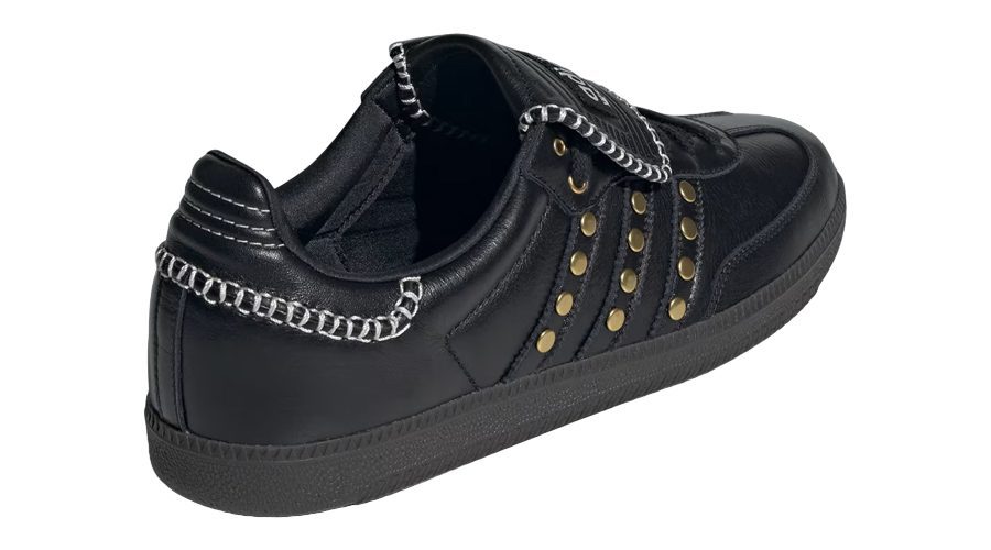 The Wales Bonner x adidas Samba “Studded Pack – Black” IG4303 updates the iconic Samba silhouette through a collaborative lens, infusing distinct elements into this classic design. The sneaker features a soft leather upper, adorned with metallic studs along the adidas 3-Stripes, providing a unique visual texture that draws inspiration from Wales Bonner’s signature motif. This design detail complements the shoe’s core black colour scheme with subtlety and impact.