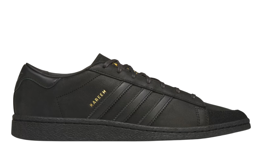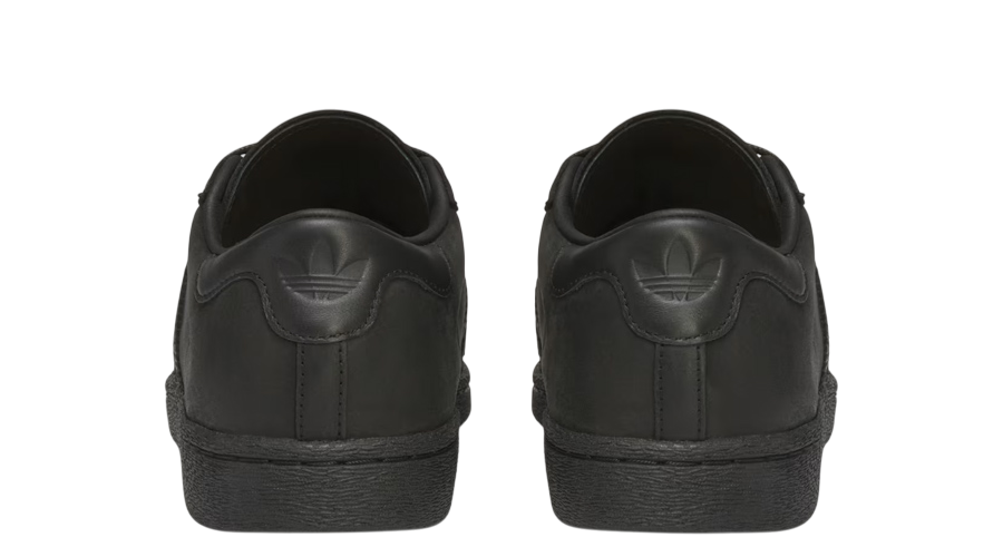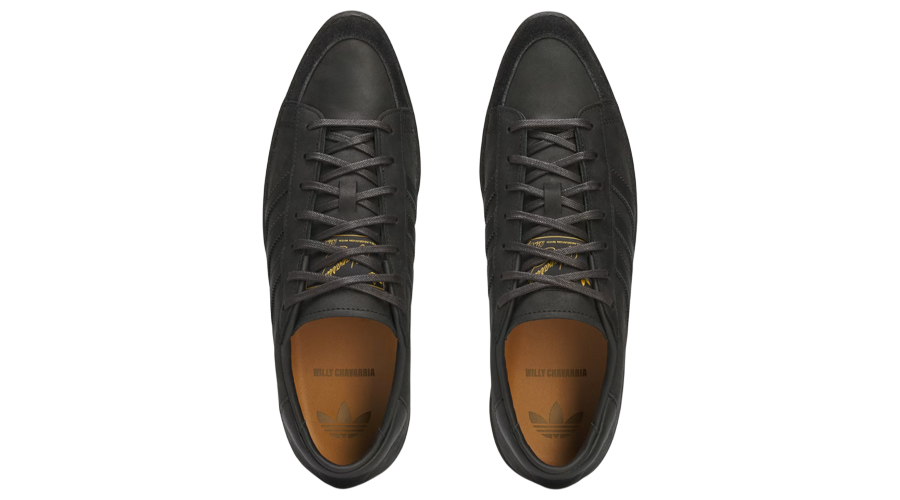 The upper arrives in smooth black leather, paired with a suede toe cap that sharpens the look. The pointed toe draws attention straight away, giving the shoe an elegant but assertive profile. Waxed laces and a reshaped backtab reinforce the refined finish, while the usual “Jabbar” text along the Three Stripes switches out for a minimalist “Willy” branding.