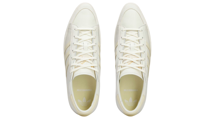 Crafted with a smooth leather upper, the shoe offers a balance of durability and premium texture. Suede touches on the toe cap add contrast, while waxed laces bring in a sophisticated detail often missing from typical sportswear designs. Adidas replaces the classic “Jabbar” script on the side stripes with “Willy,” a subtle but meaningful nod to Chavarria’s vision. The reshaped midsole tapers at the forefoot, giving the profile a lighter, more aerodynamic look that steps far beyond the basketball roots.