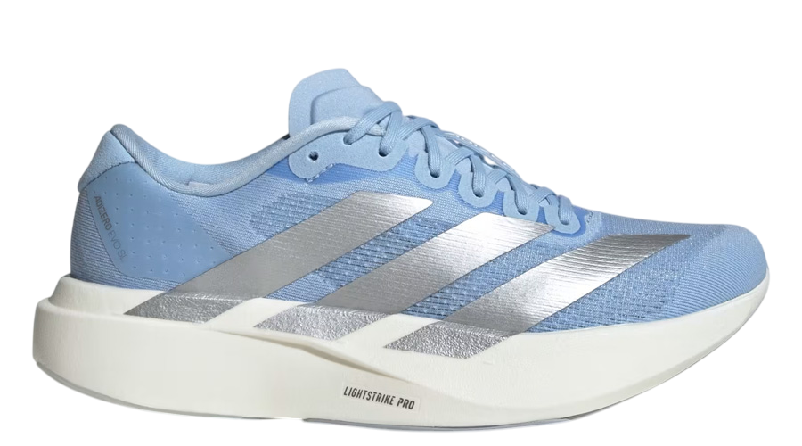 Finished with adidas’ Badge of Sport on the heel, the Evo SL “Glow Blue Silver Metallic” blends technology and style in a way that feels effortless. It’s lightweight, reliable, and striking enough to hold its own within the Adizero family — a shoe made to keep pace with busy routines while giving runners a performance boost every time they lace up.