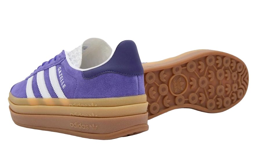 The WMNS adidas Gazelle Bold “Purple” IE0419 refreshes the iconic Gazelle silhouette, cherished since the ’70s, with new features. This version keeps its heritage with vibrant purple suede uppers contrasted by white leather 3-Stripes, maintaining the classic adidas look.