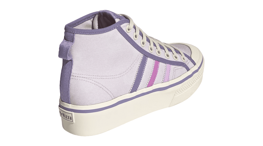 Introducing the GX4608 WMNS Nizza Platform Mid “Almost Pink Pulse Lilac” – a fresh take on the classic Nizza trainer that seamlessly blends style and eco-friendliness. Cherished by basketball enthusiasts, skateboarders, and fashion trendsetters across generations, the Nizza trainer now extends its appeal to environmentally conscious advocates. This version of the iconic design incorporates innovative elements to combat plastic waste, highlighting a forward-looking approach. While preserving its ’70s charm, complete with a sun-bleached colour effect, these shoes also represent a step towards a more environmentally aware future.