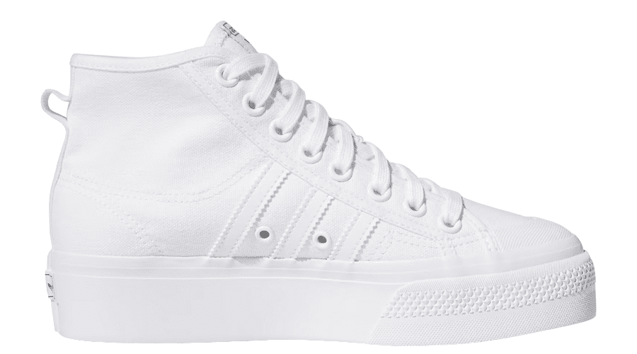 Elevate your style with the WMNS adidas Nizza Platform Mid “Triple White” FY2782 sneakers, seamlessly blending vintage aesthetics with a contemporary edge. These platform trainers pay homage to the classic ’70s basketball look while adding a modern twist. The chunky platform outsole not only captures the essence of old-school design but also adds a touch of current fashion trends.