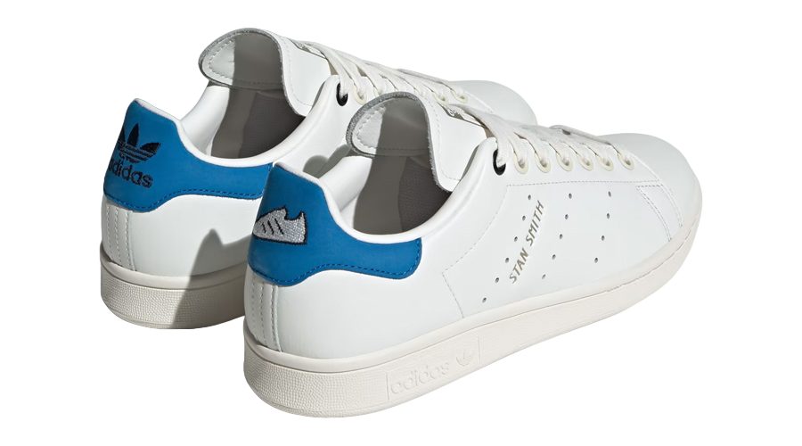 Adorned in a Core White, Blue Bird, and Core Black colour scheme, these trainers retain the Stan Smith aesthetic. The design features the iconic perforated 3-Stripes and the Stan Smith logo on the tongue. Unique to this model are the embroidered Adidas logo and Stan Smith silhouette on alternate heels, blending heritage with modern branding.