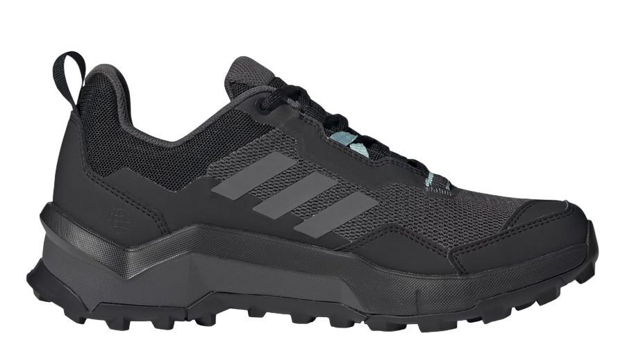 The WMNS Adidas Terrex AX4 Primegreen “Black Grey” FZ3255 is a hiking shoe that blends trail runner comfort with hiking boot stability. It has a lightweight mesh and synthetic upper, ideal for long treks. The shoe features a regular fit with a lace closure, ensuring a secure fit for various foot shapes.