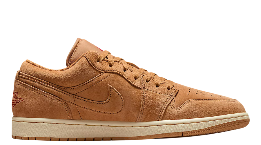 Jordan Brand introduces the WMNS Air Jordan 1 Low “Flax”, a fresh spin on a heritage silhouette that has stood strong since 1985. This release builds on the timeless AJ1 DNA while leaning into earthy tones that feel perfectly suited for the cooler seasons. The upper comes dressed almost entirely in soft flax suede, offering a premium texture and a lifestyle-ready finish. To break up the monotone base, Nike adds a subtle but striking pop of “Varsity Red” across the tongue branding and the iconic Wings logo at the heel.