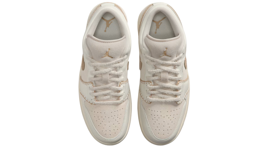 The upper blends Light Orewood Brown, Hemp, and Sail for a warm, natural palette that pairs effortlessly with any outfit. Textured hairy suede overlays bring depth and softness, while exposed twine stitching adds a handcrafted touch that feels authentic and fresh. The combination gives the shoe a breezy, summer-ready vibe without losing that signature Jordan DNA.