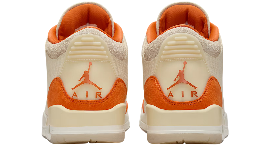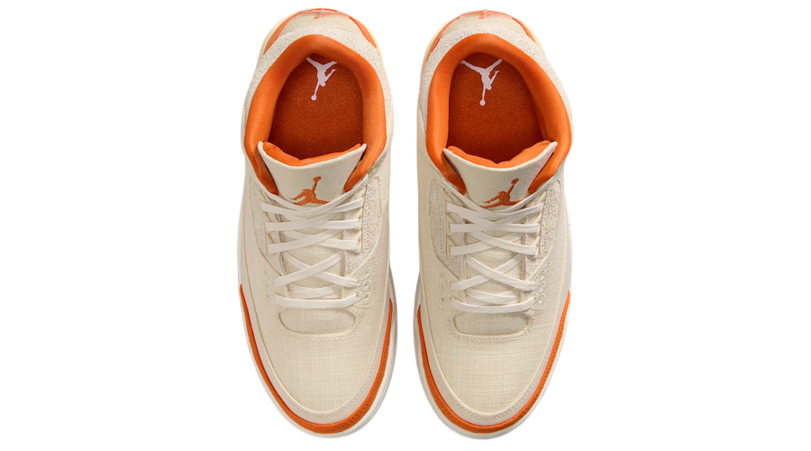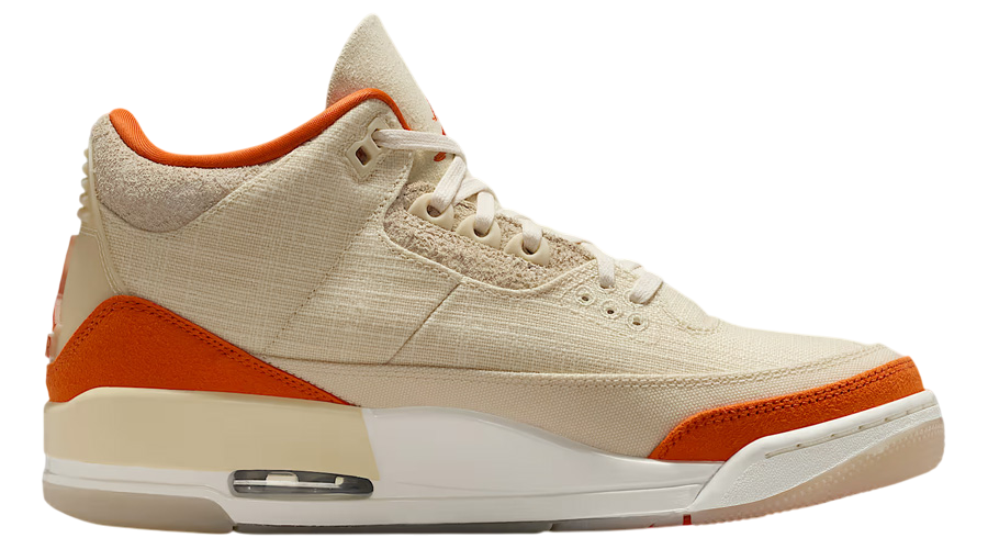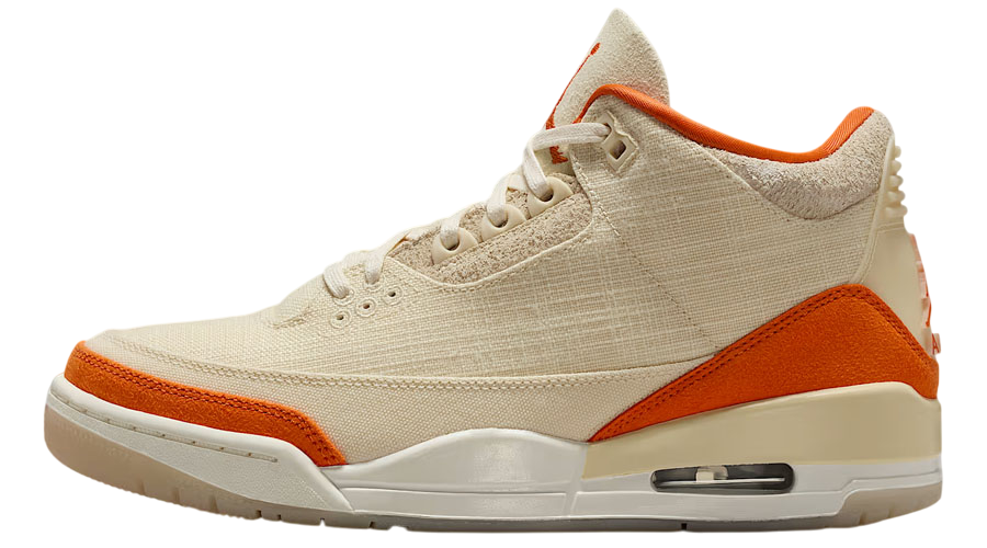 he WMNS Air Jordan 3 Retro TEX “Starfish” gives a bold update to a legendary silhouette. Official images confirm what early rumours teased: this pair abandons the usual leather for a full “Sail” canvas base. The result? A lighter, textured feel that brings fresh energy while maintaining the structure and presence the AJ3 is known for.