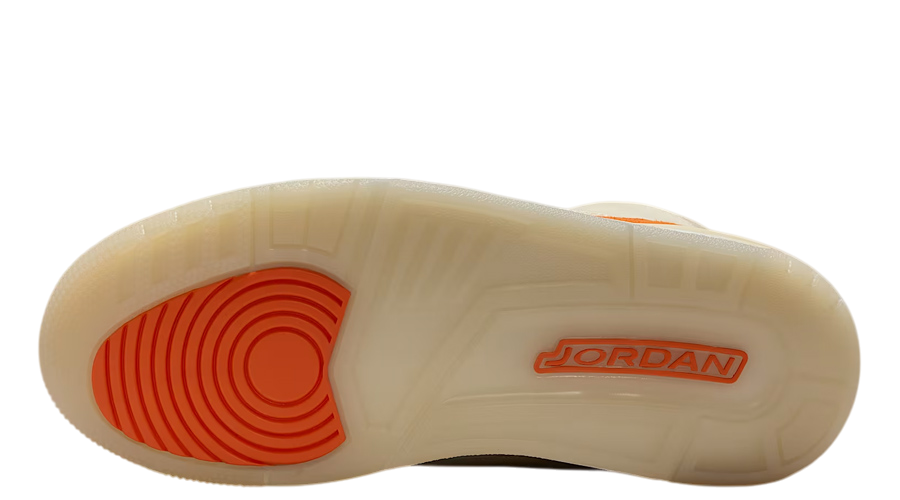 Layered on top is hairy suede in soft beige, trimming the eyelets, tongue, and collar. Deeper orange suede wraps the heel and toe, delivering a rich contrast that plays well against the neutral upper. The “Starfish” shade also lands on the tongue’s Jumpman, heel branding, and outsole, tying the palette together with purpose.