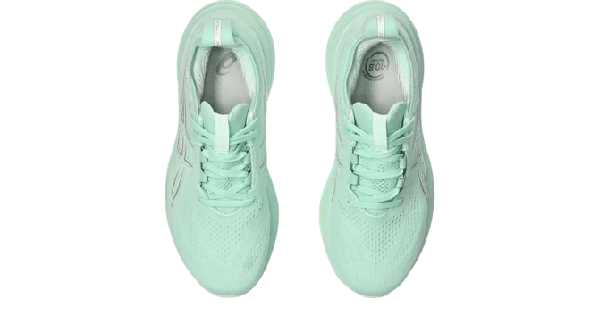 The WMNS Asics Gel Nimbus 26 “Mint Tint” 1012B601-300 is engineered to provide an exceptional level of comfort for runners. This shoe incorporates PureGEL™ technology alongside FF BLAST™ PLUS ECO foam within the midsole, offering outstanding shock absorption and softness. This combination is specifically designed to minimise the impact on joints, enabling runners to enjoy a more comfortable experience on various terrains.