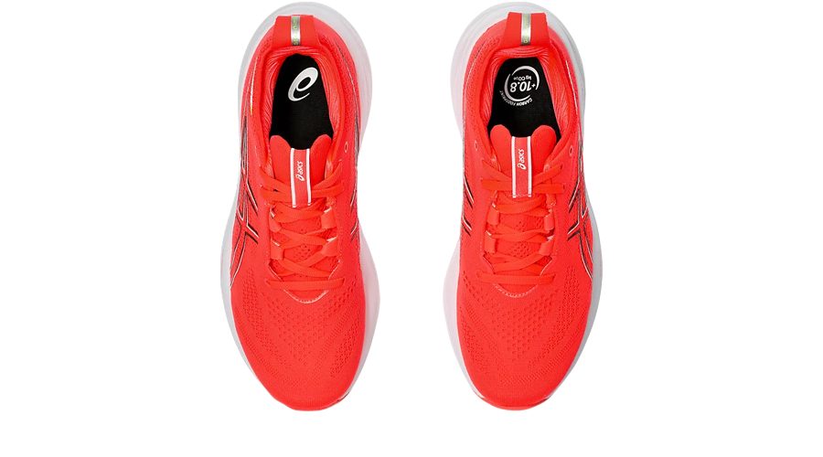 The WMNS Asics Gel Nimbus 26 “Sunrise Red Pure Silver” 1012B601-600 is engineered to provide an exceptional level of comfort for runners. This shoe incorporates PureGEL™ technology alongside FF BLAST™ PLUS ECO foam within the midsole, offering outstanding shock absorption and softness. This combination is specifically designed to minimise the impact on joints, enabling runners to enjoy a more comfortable experience on various terrains.