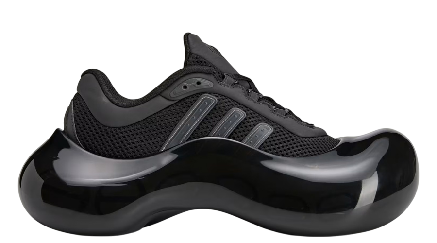 Up top, the shoe keeps some recognisable elements. Mesh provides breathability, while glossy TPU 3-Stripes sit over the midfoot. D-ring lace loops add a utilitarian touch, and “bubble” tongue branding drives home the concept. It’s part fashion experiment, part performance archive—and all conversation piece. The “Utility Black” colourway gives the whole thing a sleek finish, letting the shape speak loudest. It’s strange, it’s bold—and that’s exactly the point.