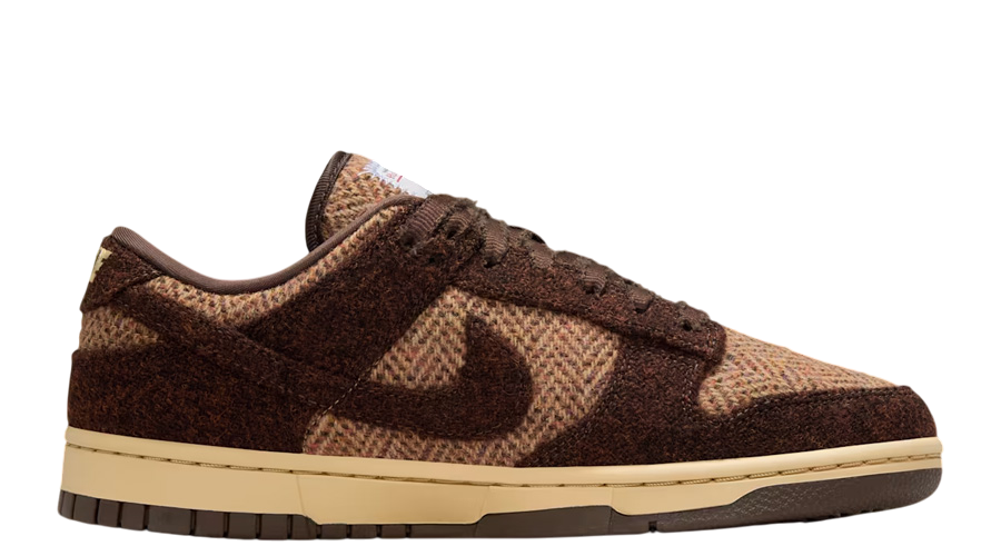 The WMNS Harris Tweed x Nike Dunk Low “Sesame” continues Nike’s collaboration with Scotland’s storied Harris Tweed®, reimagining the Dunk Low with artisanal fabrics and a refined seasonal finish. Using 100% pure new wool, the shoe brings a tactile, heritage-inspired aesthetic to one of Nike’s most recognisable silhouettes.