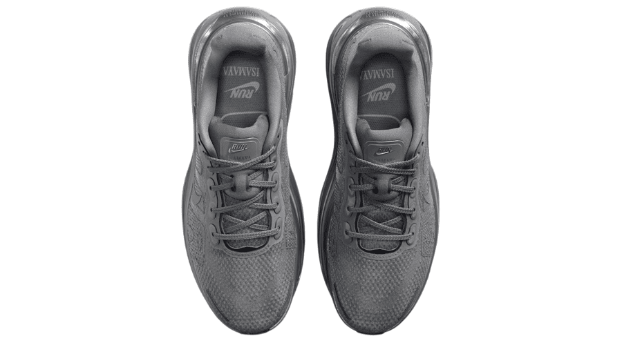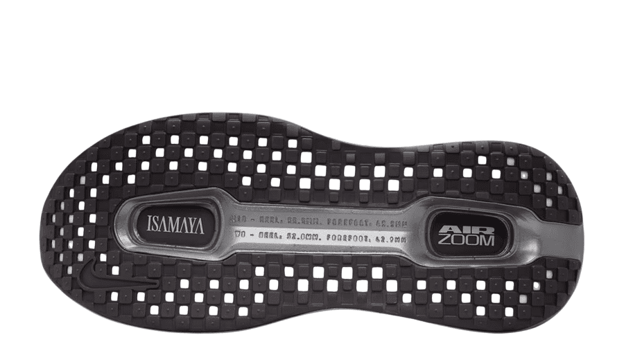 Up top, things calm down. A Smoke Grey mesh upper keeps it wearable. Breathable, lightweight, and easy to style. Matte textures balance out the shine below, creating contrast that feels intentional. You’ll also spot subtle “AIR” detailing and serif ISAMAYA branding across the tongue, insoles, and lateral midsole—small touches, but they pull the whole story together.