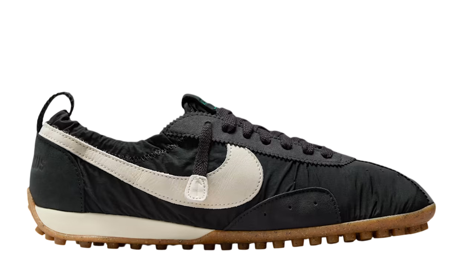 The Jacquemus x Nike Moon Shoe SP “Off Noir” reimagines Nike’s very first running shoe through a modern lens, merging heritage sportswear with high-fashion detailing. Originally crafted in 1972, the Moon Shoe marked a turning point for Nike, and this collaboration with Jacquemus highlights its history while reshaping it for today’s audience.