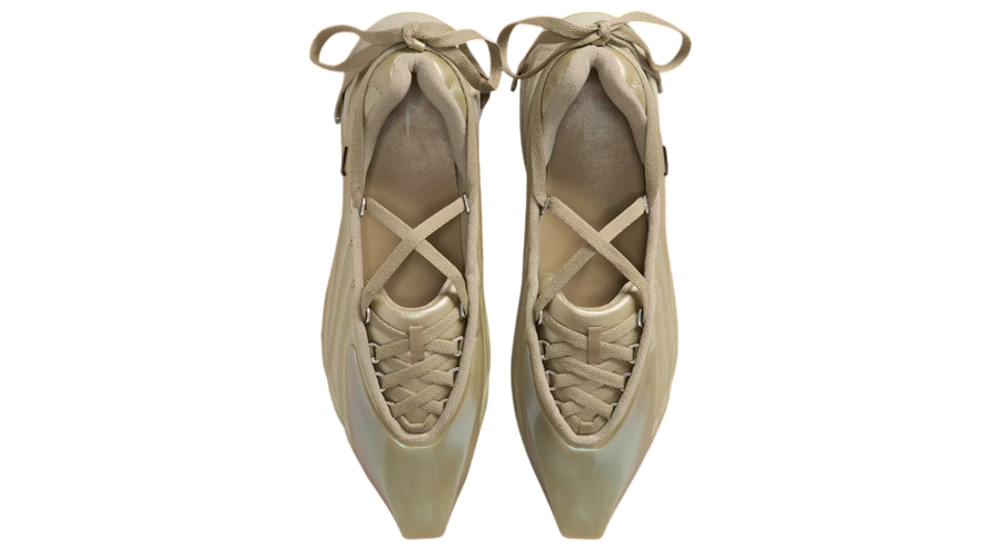 The KNWLS x Nike Air Max Muse “Beige Chalk” blurs the line between runway footwear and urban uniform. It takes the familiar weight of a chunky Air Max and reshapes it into something sharper, colder, and strangely elegant. Instead of leaning into nostalgia, this pair slips into something more dangerous — ballet reimagined through steel.