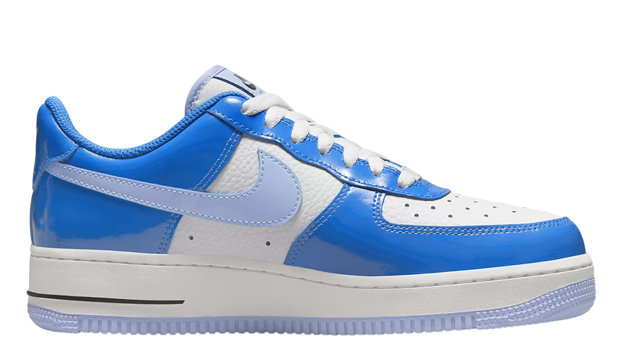 Functionally, the Air Force 1 keeps things grounded. Air cushioning in the midsole offers reliable comfort and impact support, whether you wear it for hours or all day. A padded collar, mesh tongue, and reinforced toe box help balance out the glossy finish with practical durability.