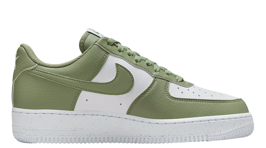 The WMNS Nike Air Force 1 ’07 SE Next Nature “Oil Green” reworks a decades-old icon with fresh materials and a seasonal twist. The upper sticks to the clean two-tone look seen across many AF1 colourways, pairing soft white leather with overlays dressed in the rich, earthy Oil Green hue. This contrast gives the shoe structure while allowing the colour to stand out without overpowering the design.