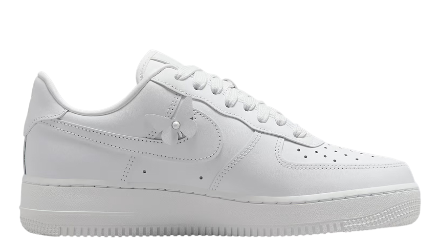 Nike brings a whimsical touch to the iconic Air Force 1 Low with the “Butterfly” edition, adding playful details without losing the shoe’s street-ready edge. The all-white leather upper keeps the design grounded in the AF-1’s classic heritage, offering the same clean, durable build that has made the silhouette a staple since the ’80s.