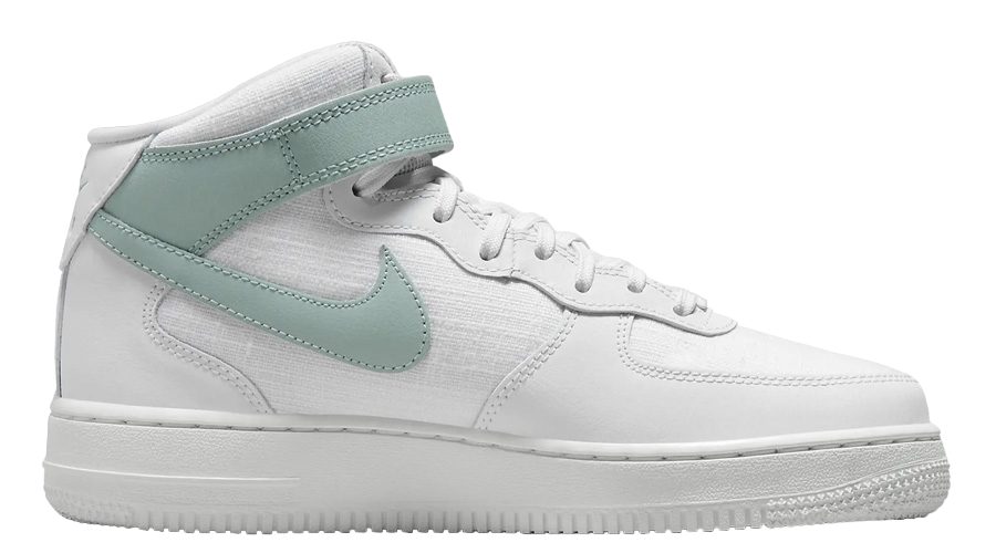 The WMNS Nike Air Force 1 Mid “White Mineral” DD9625-103 has a clean, easy-to-maintain upper, featuring leather overlays.