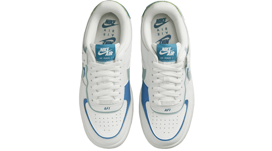 This model pays tribute to the Air Force 1’s rich history. Launched in 1982, the Air Force 1 quickly became a basketball footwear essential. Its popularity skyrocketed in the 1990s, gaining acclaim on and off the courts and becoming a fixture in hip-hop culture. The Air Force 1 Shadow “White Industrial Blue Teal” honors this legacy, bringing a contemporary edge to a timeless classic.