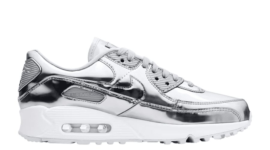 High shine. Classic shape. The women’s Nike Air Max 90 “Metallic Pack – Chrome” brings a bold edge to a timeless runner. If you like your rotation with a bit of flash, this one ticks the box straight away.