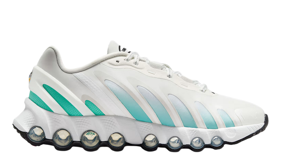 The Nike Air Max Dn8 “Cool Mint” refines the Dynamic Air concept into a slimmer, sport-inspired build without losing its distinct cushioning feel. Eight pressurised Air tubes run the length of the midsole, delivering a springy response that adjusts with every step. This system sits directly above the rubber outsole, keeping the ride close to the ground for a smooth, stable transition.