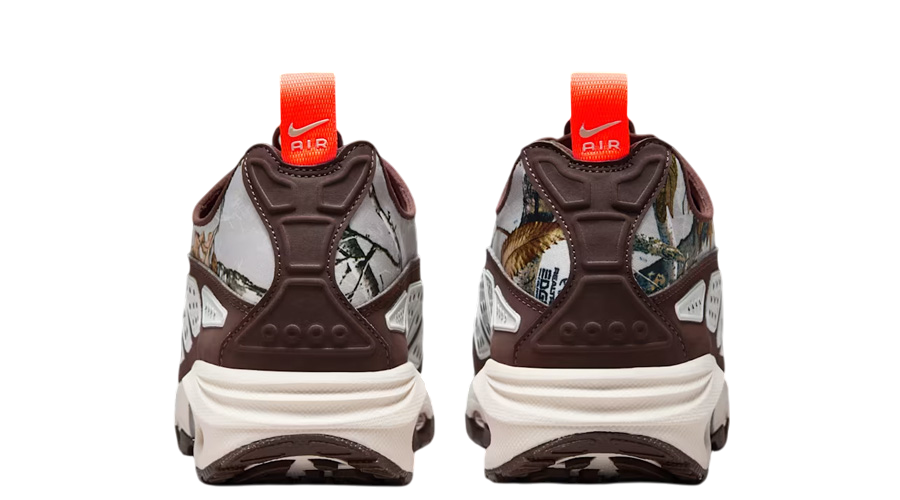 This women’s edition draws inspiration from the great outdoors, featuring striking Realtree camouflage graphics across the upper. The earthy brown mudguard grounds the look, while sail rubber overlays bring texture and contrast. A flash of bright orange hits the Swoosh and pull tabs, giving the shoe that unmistakable pop that Nike does best. It’s the kind of detail that instantly catches the eye without overdoing it.