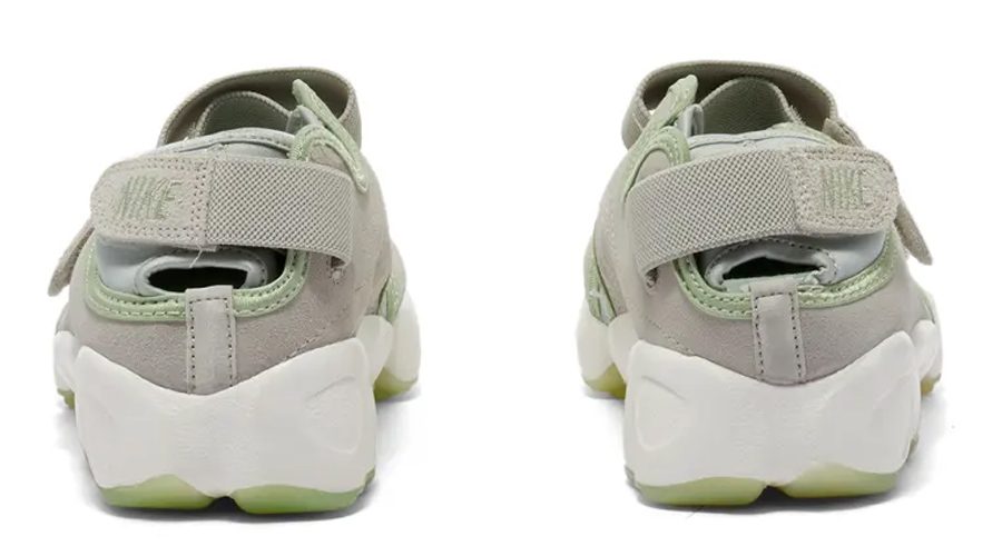 The “Light Bone Honeydew” DX2677-001, a fresh variation of the Nike Air Rift, brings a novel twist to the classic sneaker. Renowned for its distinct tabi split-toe design, this new model steps away from the usual mesh and dives into a, suede-like material. The choice of this sleek texture, combined with the muted “Light Bone” colour that adorns the outer panels and strap, lends the shoe a bold yet refined appearance, perfect for those who love a mix of traditional and modern styles.