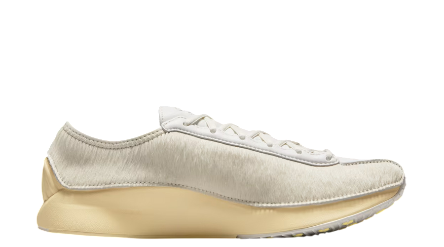 Nike gives the Air Superfly LX a fresh material update, replacing its usual synthetic build with soft faux pony hair. This swap adds a tactile, premium feel to the upper while maintaining the sleek, running-inspired silhouette the model is known for. Sail and Muslin tones create a calm base, contrasted by gentle Soft Yellow accents that lift the look without overpowering it.