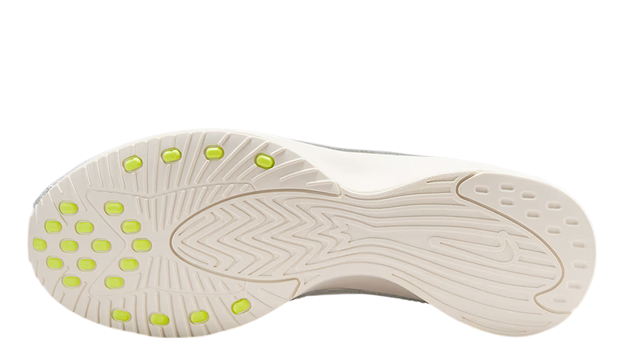 Volt green hits underneath break up the upper’s restraint with a quick flash of colour through the outsole. That punchy detail, combined with the cushioned Air setup in the heel, brings a bit of bounce and energy to the design. The outsole tread references track patterns, offering a subtle nod to the shoe’s performance roots while still keeping it grounded in lifestyle wear.