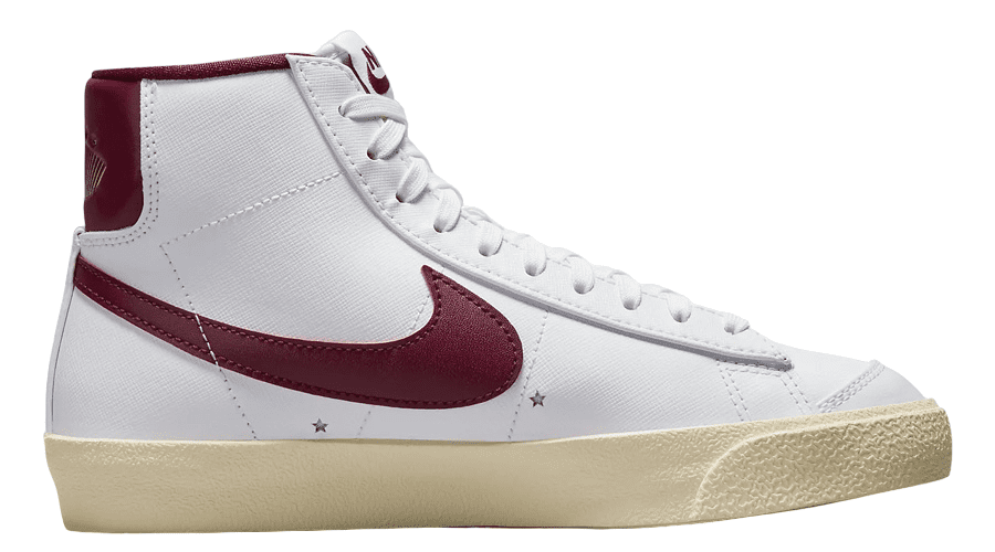 In a color scheme of White, Muslin, Metallic Gold Star, and Team Red, the WMNS Nike Blazer Mid ’77 “Sisterhood” pays homage to the Blazer’s original roots as a basketball shoe introduced in 1972. It has evolved into a contemporary staple, transitioning from a basic canvas high top to a leather mid top and casual low top, solidifying its enduring appeal and timeless design.