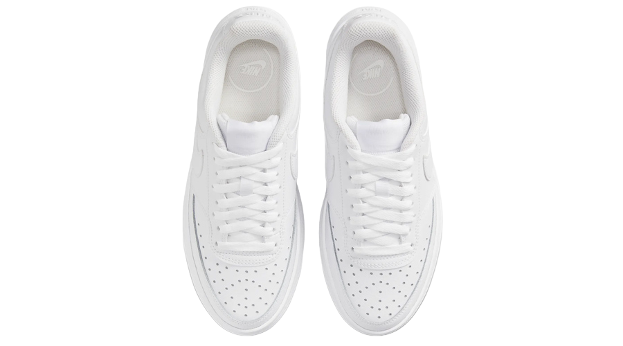 The WMNS Nike Court Vision Alta “Triple White” DM0113-100 presents a fusion of classic basketball shoe aesthetics with modern updates for everyday wear. Crafted from leather, the upper part of the sneaker ensures durability and is designed with perforations on the toe to enhance air flow, making it practical for both active and casual use. The choice of materials and the design approach reflect a commitment to maintaining the integrity of traditional basketball footwear while adapting to current footwear needs.