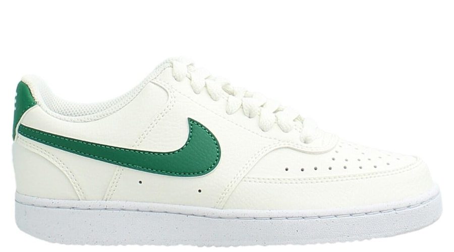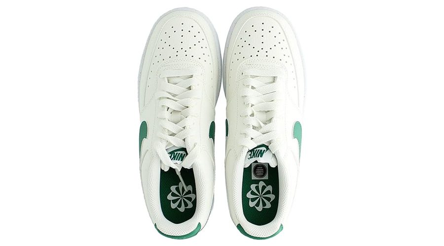 Introducing the Nike Court Vision Low Next Nature “Sail Malachite” FQ8892-133, a sneaker that seamlessly blends the nostalgic charm of 1980s basketball aesthetics with the dynamism of modern-day street style. This model is a testament to Nike’s commitment to honoring the past while forging ahead with contemporary design sensibilities.