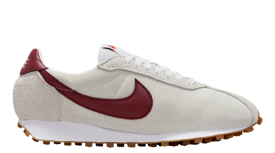 The WMNS Nike LD 1000 “Sail Dark Team Red” pulls a classic silhouette out of the archives and gives it a sharp, understated twist. Originally introduced in 1977, the LD-1000 was built for long-distance running. Today, it steps back in with the same flared heel and vintage shape—but the materials and colour blocking do all the heavy lifting.