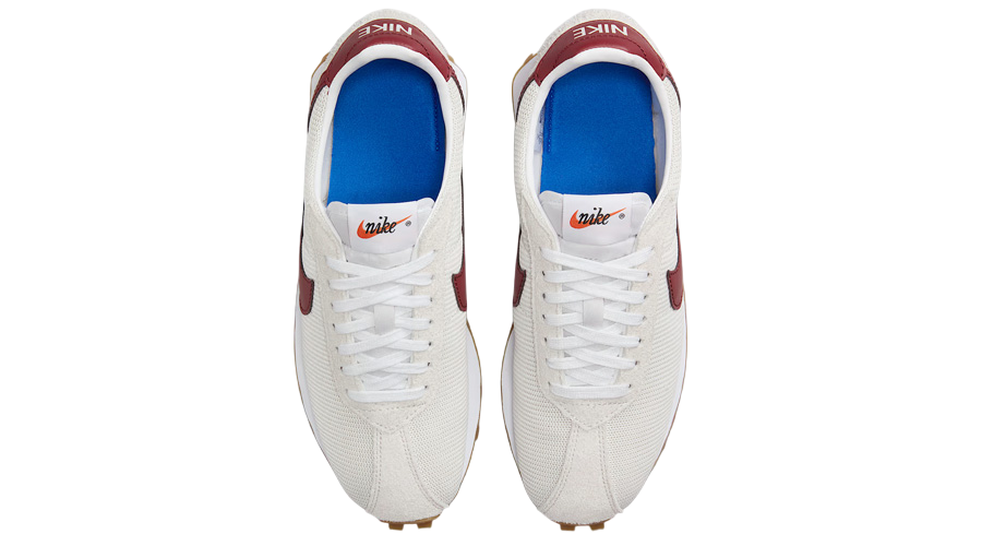 The upper mixes leather and textile to strike the right balance between structure and breathability. The Sail base sets a clean backdrop, while deep red overlays add contrast and a slightly worn-in feel. A black Swoosh breaks up the colour blocking across the sidewall, tying back to the dark waffle outsole underfoot.