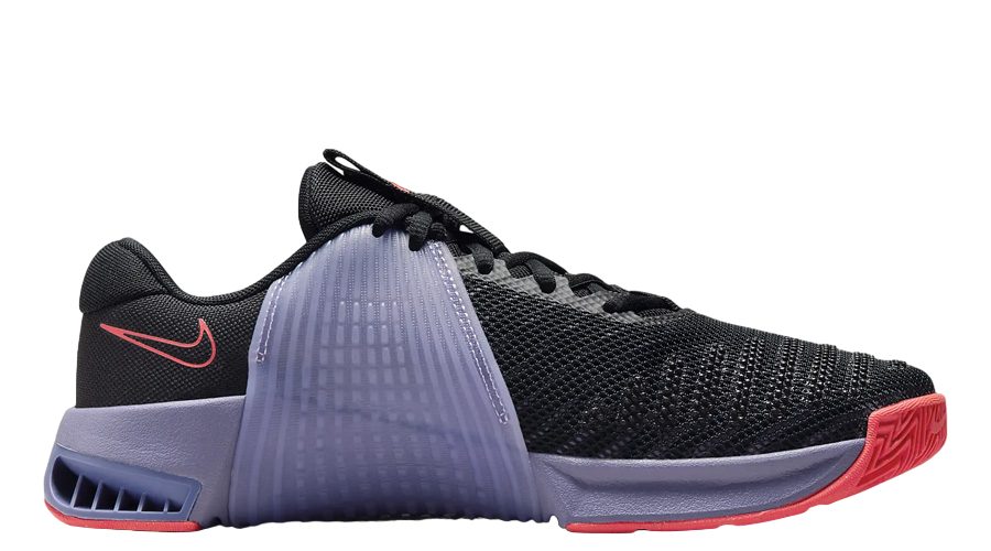 Additional features include a full-rubber outsole for traction in dynamic exercises and a breathable textile with a haptic print that not only adds durability and texture but also supports the toe area during heavy lifts. Presented in a Black/Barely Grape/Metallic Silver colourway, the Nike Metcon 9 “Barely Grape” stands as a testament to innovation and resilience, ready to accompany you to the pinnacle of your fitness journey.