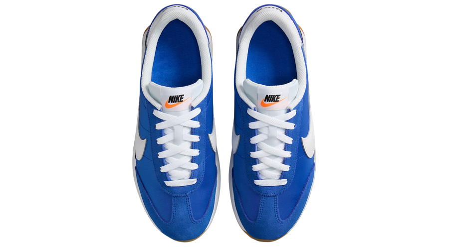 The upper combines breathable mesh and soft suede overlays, offering a layered look that’s lightweight yet durable. The puffed Swoosh adds a nostalgic touch, complementing the wide collar opening that stays true to vintage running proportions. Subtle stitching details and a classic lace-up closure enhance the throwback appeal, while the Game Royal and Black colourway, accented with Safety Orange and White, keeps it bold yet wearable.